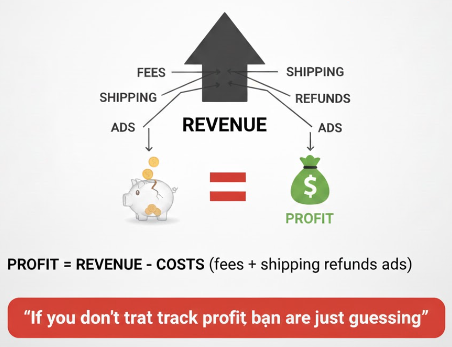 Profit = Revenue – COGS – Shipping – Fees – Other Costs