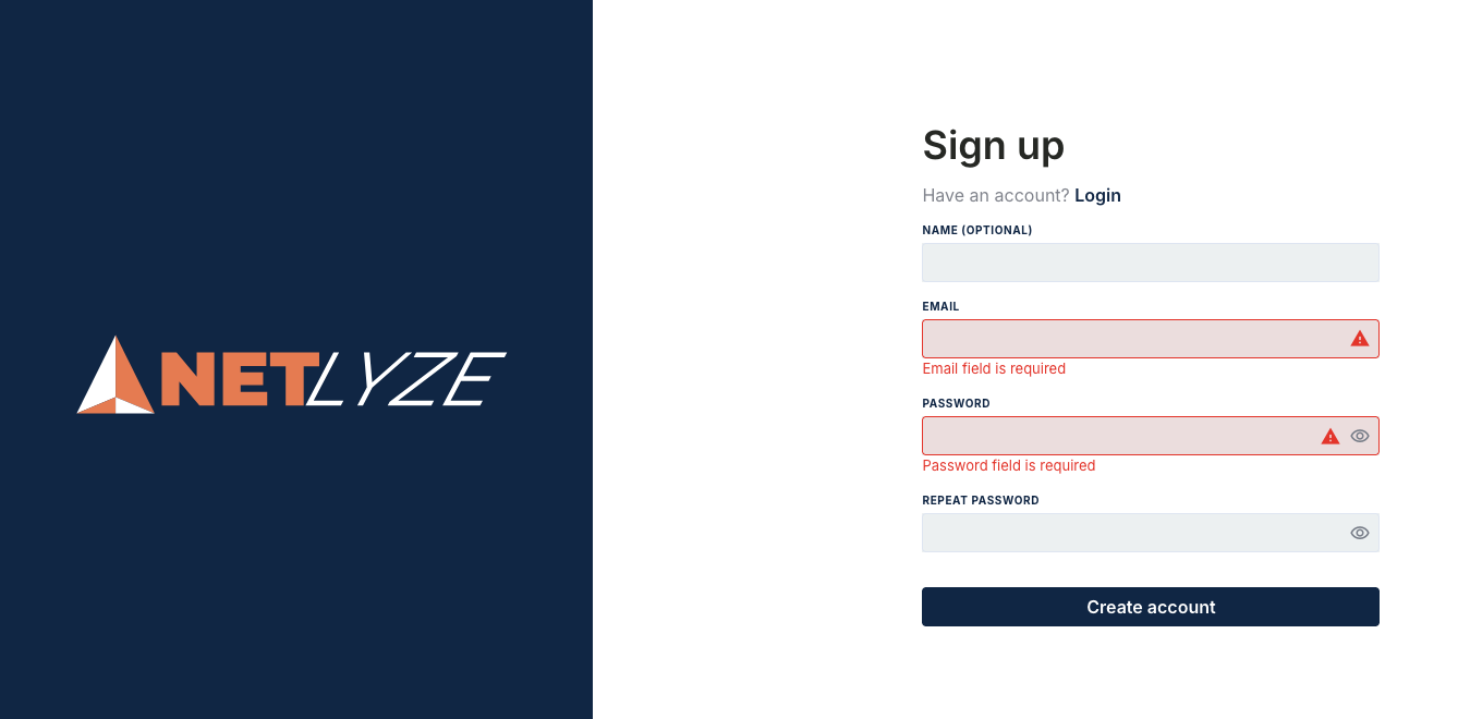 If you already have an account, click Login at the top of the page to sign in instead.